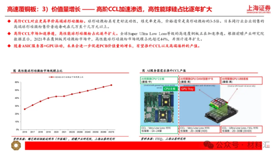 高速覆铜板:高阶CCL加速渗透,高性能球硅量价齐升。