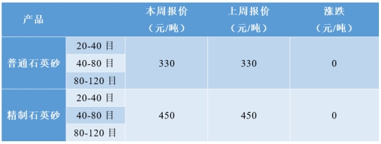本周国内高纯石英砂市场主流价格分别为: