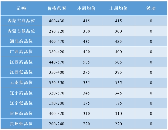 o 中层砂的价格在19-23万元/吨,与上周持平;
